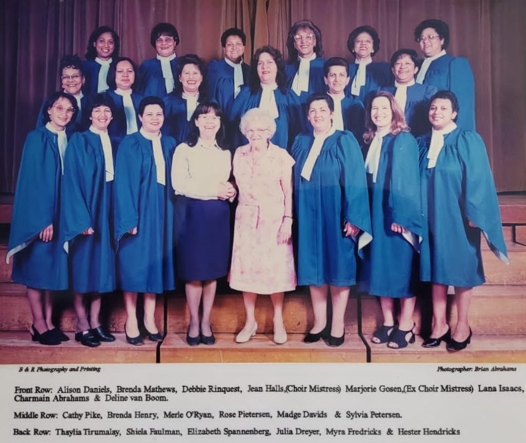 Some of the members known were, Tania (Herman) April (daughter of the late Tony Herman), Dalene van Boom, Hester Hendricks, Erica Sinden-Gilbert, Madge (Davids) George, Debbie Rinquest, Rose Petersen, Gloria and Ester May (late), Mercia Miller, Mrs Dreyer, Alison Daniels., Brenda Matthews. Lana Isaacs, Charmaine Abrahams, Cathy Pike, Brenda Henry, Merle O’Ryan, Sylvia Petersen, Thaylia Tirumalay, Shiela Faulman, Elizabeth Spannenberg, Julia Dreyer, Myra Fredericks.